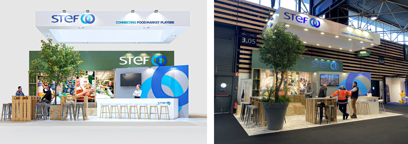 Ces éléments permettent ensuite à nos équipes de vous proposer un stand 100% sur-mesure. Nous le fabriquons dans notre atelier de menuiserie et vous offrons la possibilité de le réutiliser sur de futurs événements.