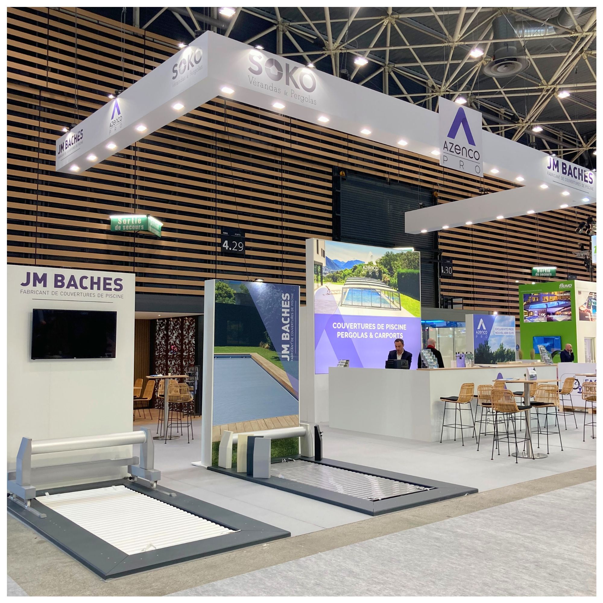 Que vous ayez pour objectif d’exposer des spas, poolhouse, matériaux ou abris de piscines, nos équipes ont la solution. Nous créons des stands sur mesure dans le respect des règles d’architecture et de votre charte graphique.